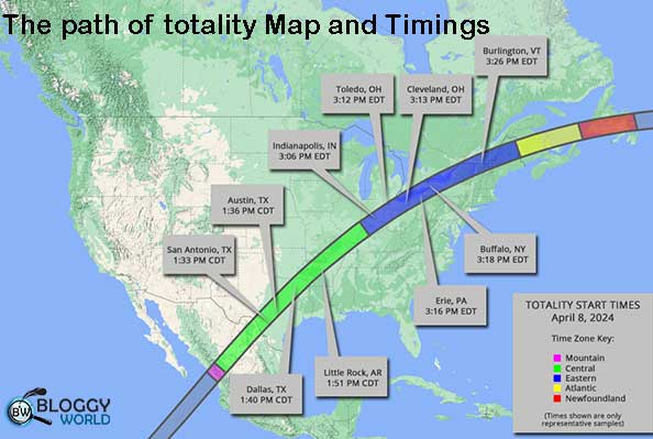 Here are the timings for various cities along the path where the eclipse will be total, as shared by NASA. You can also check other websites like NationalEclipse.com and TimeandDate.com for more help with planning.